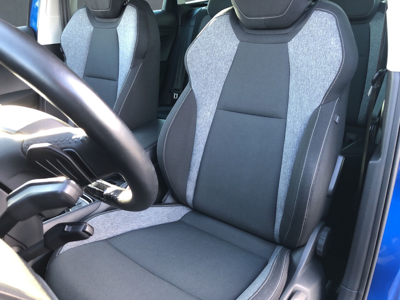 Sitzbezug / Polsterung: Stoff Ambition Grau, Sitzheizung vorn + hinten, Ambiente-Beleuchtung LED, Kombiinstrument digital (virtual cockpit), Innenspiegel mit Abblendautomatik, Isofix-Aufnahmen für Kindersitz an Rücksitz, beheizbares Lenkrad (Leder - 2 - Speichen) mit Multifunktion und Schaltfunktion, Mittelarmlehne vorn, Gepäckraum-Abtrennung (Netz), Gepäckraumabdeckung, Rücksitzlehne geteilt/klappbar, Sonnenblende rechts mit Spiegel