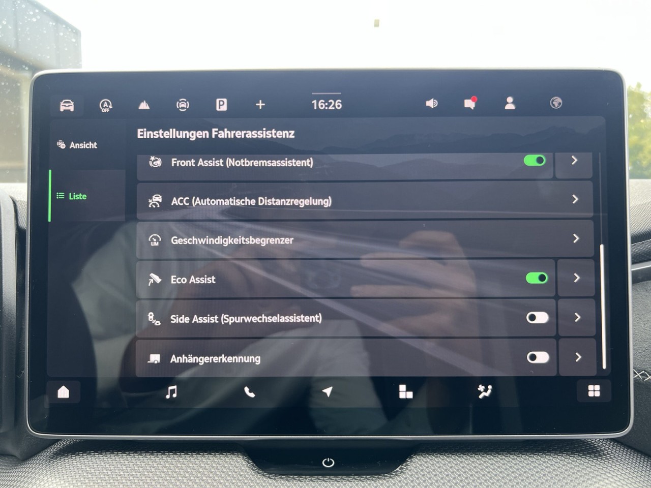 Fahrassistenz-System: Auffahrwarnsystem mit City-Notbremsfunktion (Frontradar-Assistent), Fahrassistenz-System: Spurhalteassistent (Lane Assist), Fahrassistenz-System: Spurwechselassistent inkl. Auspark-Assistent und Ausstiegswarnung, Fahrassistenz-System: Müdigkeitserkennung, Geschwindigkeits-Begrenzeranlage, Fahrassistenz-System: Verkehrszeichenerkennung